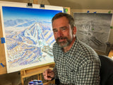 With a background in illustration and graphic design, Rad has recently shifted his creative energy towards painting hand-crafted ski maps. His work builds upon the legacy of the legedary ski map artist James Niehues, a tradition that began with Hal Shelton after World War II followed by Bill Brown in the 1970s and early 1980s.
